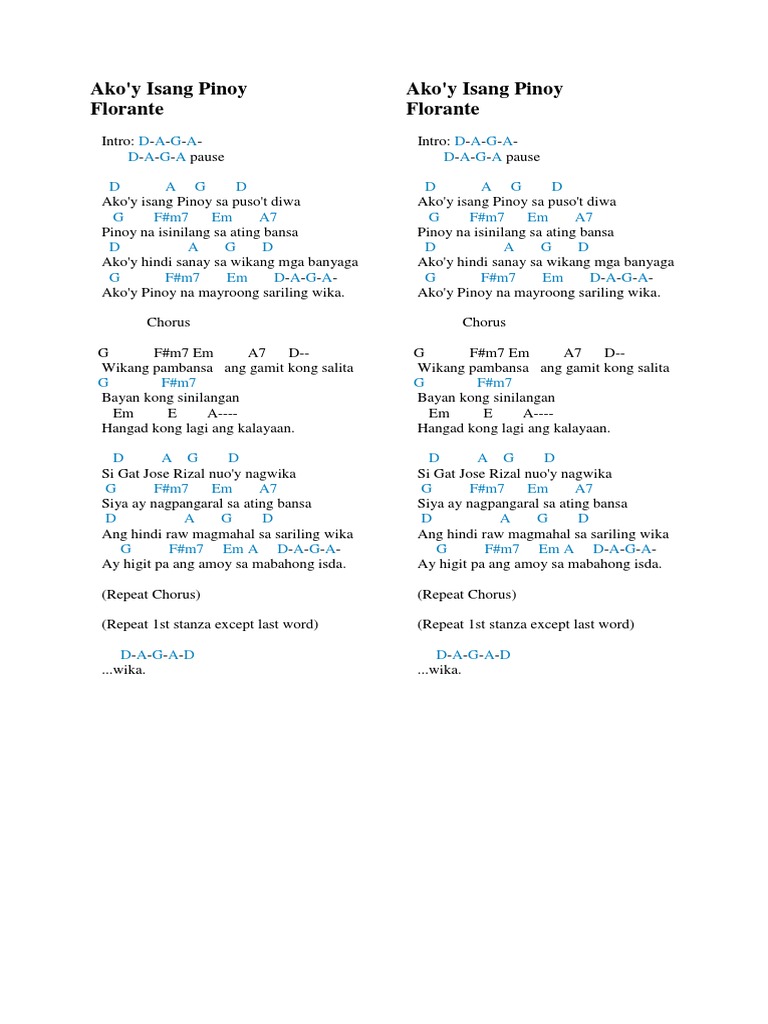 Play ngayon tabs using our free guide. At kung ikaw ay magaasawa ang kunin mo ay pilipinaPagkat magaganda ang mga pinaySa bahay man silay mahuhusay. 2x E DE Dati rati ang isipan koy alipin lang E DE Isip ng banyaga ang aking kinagisnan C E Aking pinutol ang tanikala C E pause Upang ang isip ko ay lumaya.